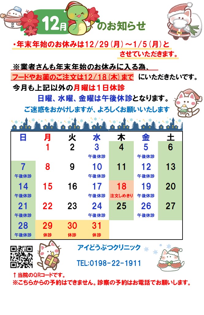 ・12月の臨時休診はありません。